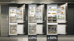 Ankastre alt montajda geniş alan – 177 cm yükseklik x 55 cm genişliğe sahip standart alta monte ankastre buzdolabıyla karşılaştırıldığında, 193 cm yükseklik ve 70 cm genişlik boyutlarına sahip bu yeni buzdolabı, buzdolabınızda daha fazla iç hacim sunar.