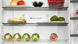 Haier Air Surround Fresher Tech ile hava, buzdolabının her yerine daha nazik ve yumuşak bir şekilde akar. Kolon üzerinde bulunan özel yanal çıkışlar sayesinde bu sistem, soğuk havayı gıdaları kucaklayarak tüm buzdolabı boşluğuna homojen bir şekilde dağıtarak gıdaların üzerine doğrudan akmasını, ağırlık kaybına ve gıdaların kurumasına neden olmadan homojen bir şekilde dağıtır. Bu nedenle Haier Air Surround, 7 günün sonunda bile gıdaların tadını, tutarlılığını ve sululuğunu ilk günkü gibi %99’a kadar* korur.