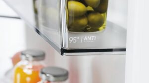 95°’lik balkon eğimi, kapıları açtığınızda şişelerin yerinde kalmasını sağlayarak düşme riskini ortadan kaldırır.